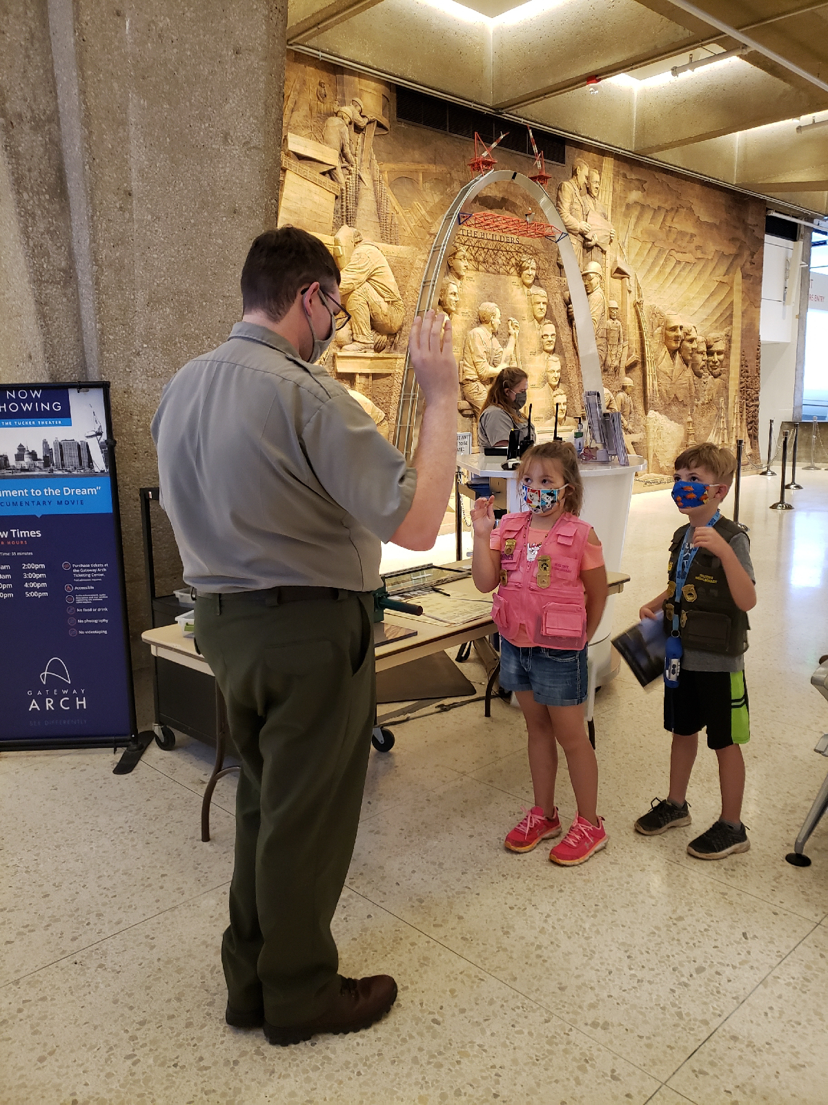 We made it to the Arch around 11:30am. I didn't realize there was a whole museum under the arch, underground! But there was! We spent the next 3 hours going through the museum, learning about the arch, the time it was built, and the history that led to it being built. The kids worked on their Junior Ranger booklets and ended up earning another badge! <3 :-D