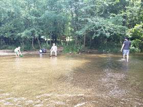 Ok, so let's recap, on Tuesday we hiked around Mammoth Cave National park for about 5 miles. On Wednesday we hiked around Stones River National Battlefield for about 4 miles. (I think I may have written 3 miles on the last blog where I actually talked about Stone's River, but I just checked on my phone, it was 4 miles.) So when we woke up Thursday morning, we were pretty exhausted. We decided to take the day pretty easy. We slept in (each day we got up later and later it seemed), and when we did get up and around to go out, we stayed pretty close to home and made sure our activities were relaxing. Apparently there are rivers and water play areas all over Tennessee! Shanna sent me a list of places to look up before we came, each spot looking just as great, or more wonderful than the last. So on Day 7, we were ready for some R&R. We packed lunches and brought chairs and enjoyed the nice cool water for several hours over the afternoon. We reapplied sunscreen periodically, and, shockingly enough, I think Michael ended up being the only person not to get a little bit of a burn. The kids' cheeks turned a little pink, and after Connor's trunks got wet, despite having sunscreen on his back, they sagged a little and he got a little line of red, right on his lower back. My burn was mostly the result of not being sprayed all the way over. I had a couple spots on my chest that missed sunscreen and got a little pink. We had a great afternoon enjoying the warm sun and the cool water. The pictures from here are actually where our Tennessee picture for our map came from! Avery wanted to play in the fall, especially because some older, larger kids were going down in like a water slide, but as she's never really played in running water, and we didn't pack a life jacket, I said I hard no to that one. She just doesn't understand the danger of running water or how quickly she could get pulled under. Connor, ever cautious, had no problem staying close or playing frisbee in the shallow area. Avery tried to catch minnows in a water bottle, for what seemed like hours, but they were too elusive for her. It was a great day! We had lots of fun and thoroughly enjoyed our day of R&R!